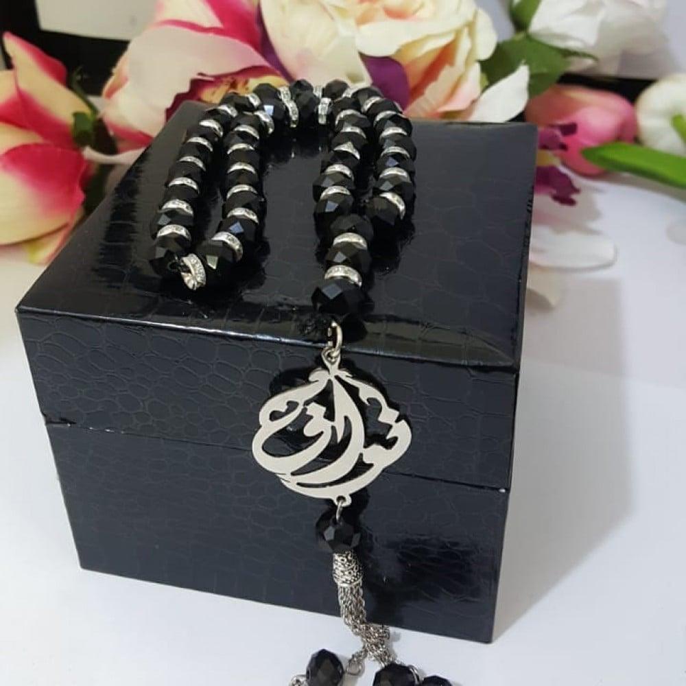 سبحة الذهبية أو الفضية الفاخرة مكونة من 33 حبة مطلية بالذهب أو الفضة، منقوش عليها الاسم المختار، متصلة بخيط نايلون عالي الجودة، مع تغليف فاخر في علبة جلدية وكيس هدايا يحملان شعار .