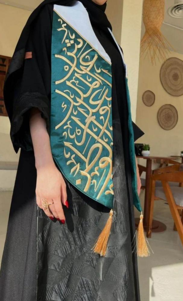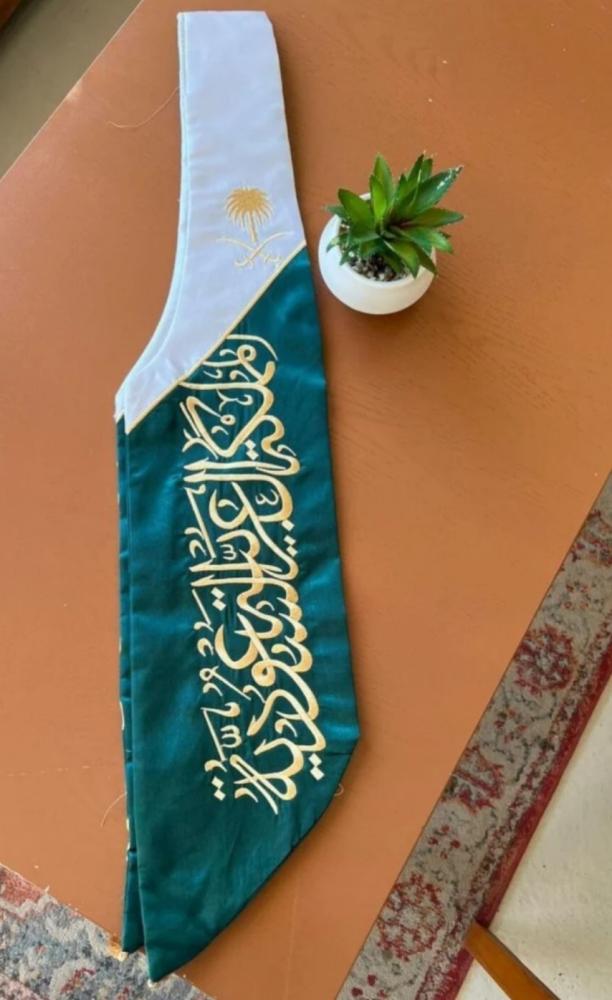 - *العبارات:* تطريز لعبارات يوم التأسيس وشعار المملكة العربية السعودية